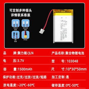 3.7vポリマーリチウム電池103048 1500mAh美容器太陽エネルギーランプ補水器電池