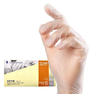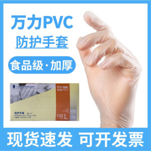 万力pvc使い捨て手袋粉なし家庭用グルメ飲食労働保護透明食品級厚い防護手袋