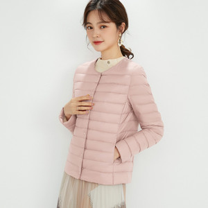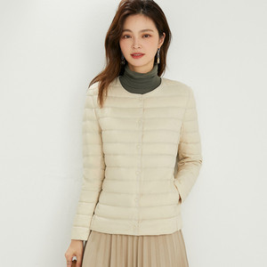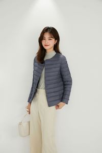 軽量ダウンジャケット レディース 2025年冬新作 ラウンドネック 変形Vネック ショート丈 無地 ダウンジャケット