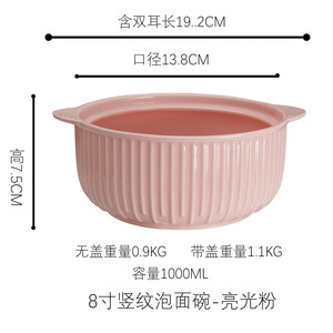 8inch 縦縞即席麺丼 艶ありライトピンク