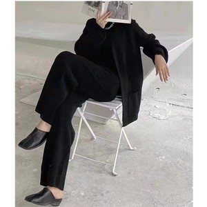 2025秋冬レディースニットセーターファッショナブルなセットアップミドル丈ゆったりとしたカジュアルスタイルカーディガンワイドパンツ3点セット