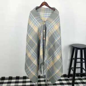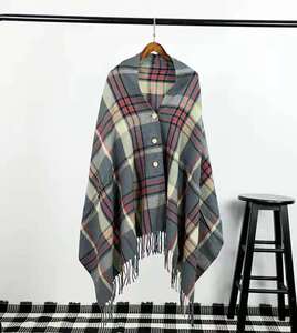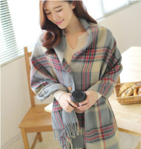 マフラーの女性の秋冬の長いネットの赤いボタンの格子のマフラーのストールの両用の組み合わせは厚くて暖かいストールの潮を厚くします。