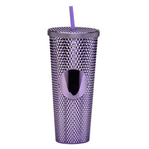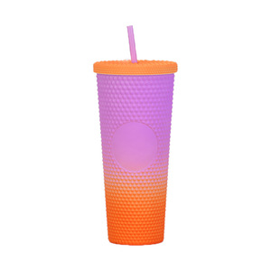 二層プラスチックストローカップ大容量クリエイティブ 710 ミリリットルドリアンカップハンドカップ発光変色レインボーグラデーションカップ