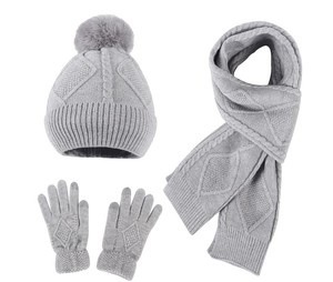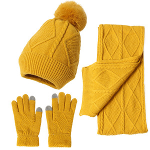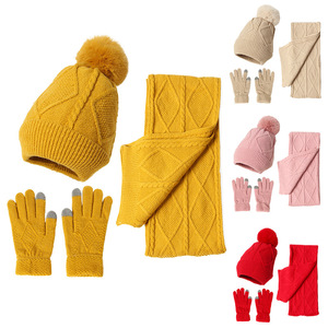 国境を越えた欧米の成人帽子マフラー手袋3点セット秋冬の新型保温厚手毛糸帽子