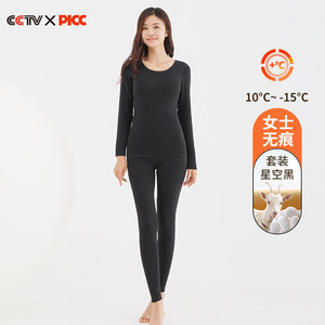 秋冬徳絨毛保温下着女性抗菌シルクアクリル無痕発熱カシミヤ秋衣秋ズボンセット卸売り