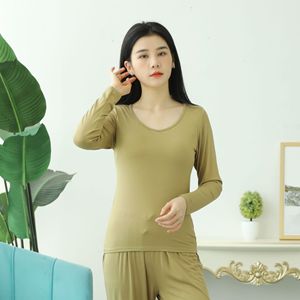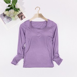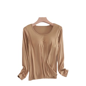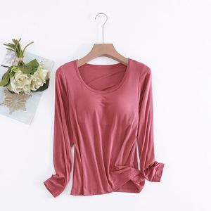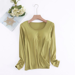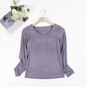モーダルカップ一体の長袖の女性は胸のパッドの長袖の韓国版のゆったりしている内に家の上着の女性のパジャマの卸売りを掛けます。