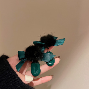 32 # 銀針-緑の毛の蝶結び