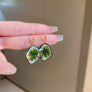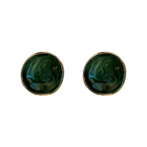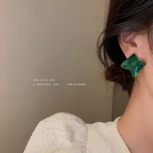銀針ドリップオイル幾何学模様カラーグレージングイヤリング女性用グリーンメタリック風誇張甘辛イヤリング個性派万能イヤリング卸売