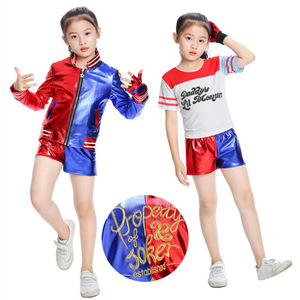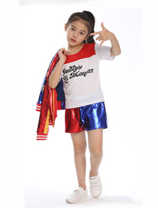 自殺チームのハリークラインsuicide squad小醜い女性のコスプレ衣装の子供モデルの現物