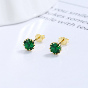 ジルコンのネジのイヤリングの女性の祖母の緑の水晶の925純銀のシンプルなinsの小さい耳の骨の釘は帽子のイヤリングの装飾をねじります。