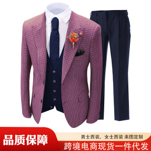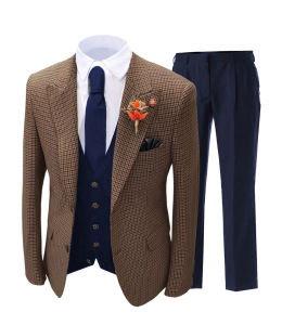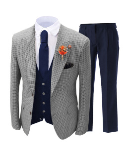 四季の韓国版の修身スーツのカジュアルな格子のストライプのスーツの男性のスーツの3つのセット