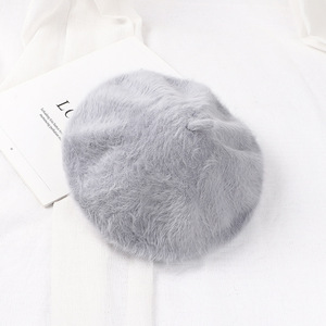 韓国スタイルのウサギの毛皮のベレー帽秋と冬の帽子女性の多用途トレンディな画家の帽子ニット暖かいベレー帽豪華な帽子