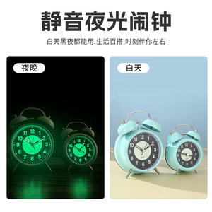 発光目覚まし時計金属ミュート児童生徒の寝室のベッドサイド特別な目覚まし時計ギフトバッテリー時計卸売