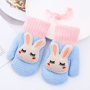 0-3歳の子供手袋冬の子供の屋外保温男女赤ちゃんかわいい漫画ウサギニット二重ベルベット