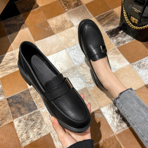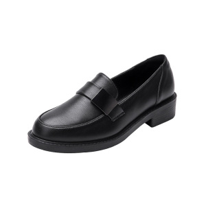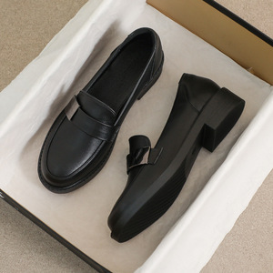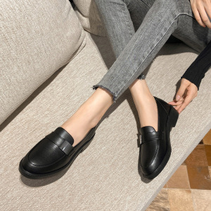 本革レディースシューズ 2025年秋新作 フラットローファー ブリティッシュスタイル ビーンシューズ ブラック オフィスワークシューズ
