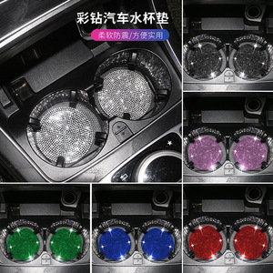 クロスボーダーダイヤモンドがちりばめられたクリエイティブなフルダイヤモンドカー用品コースター、ダイヤモンドがちりばめられた滑り止め断熱ウォーターカップスロットパッド、シリコンラインストーンコースター