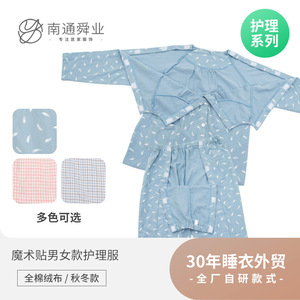 病人服秋冬棉絨毛一枚式上着ズボン純綿春男女が介護服を着やすい老人