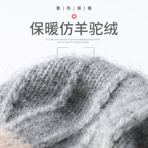 羊キャメルニットタッチスクリーン手袋女性秋冬保温屋外防風ベルベット韓国版かわいい防寒手袋dz70