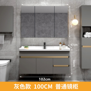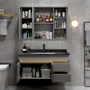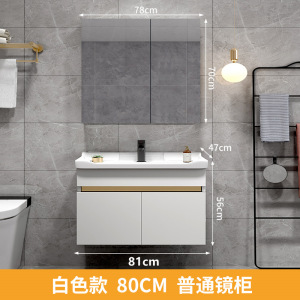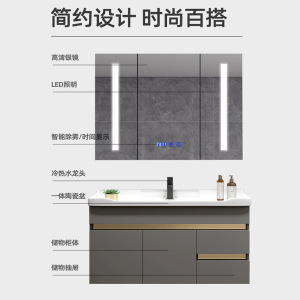 浴室キャビネットセット岩板盆一体陶磁器盆シンプルトイレ洗面台洗面台スマート鏡キャビネット