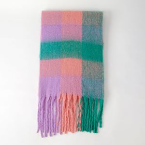 メーカーac同タイプの格子マフラー女性北欧の新型秋冬の柔らかいモチモチとした保温ウールが色のチェックマフラーのストールにぶつかった
