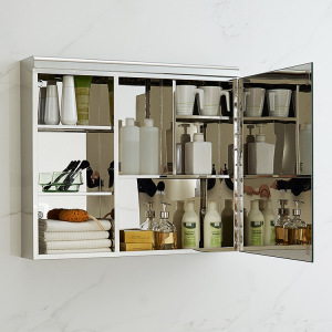 ステンレスミラーキャビネット浴室洗面台壁掛け式トイレミラー収納一体型キャビネットトイレ化粧鏡7001