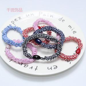 韓国の新しい布芸の砕花の小腸の輪の小さい清新でシンプルな格子縞の布の輪は縄の皮の筋を刺して卸売りします。