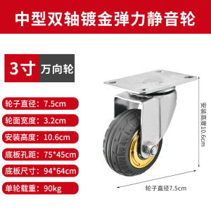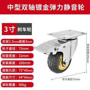 クロスボーダーミディアムサイズ金メッキホイール 3インチ 4inch 5inch ゴム製ユニバーサルホイール ブレーキ付き 静音ゴールドプラスチックキャスター