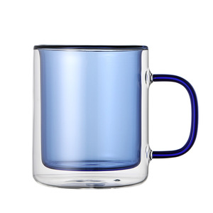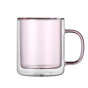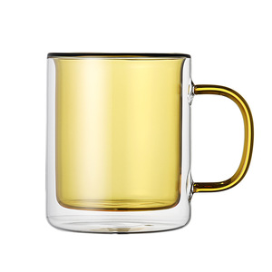 卸売り二重グラス家庭用取っ手付き高ホウ素シリコングラスシンプルコーヒーカップ朝食カラーマグカップ