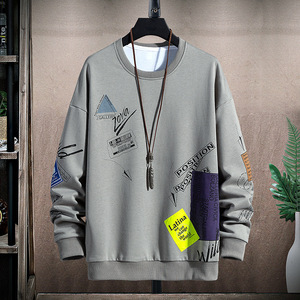 男性服秋冬新作ins韓国版プリントアルファベットtシャツ丸首カバーカジュアル上服男