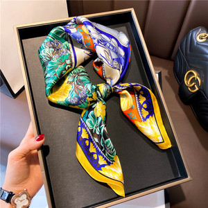 杭州シルク绢糸ハイエンドシルケット春夏新作プリント装饰70cmスカーフ女性