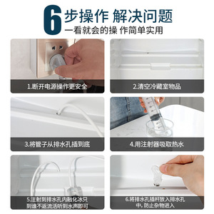 冷蔵庫の排水穴詰まり解消、冷蔵室の水たまり排水管詰まり解消、冷蔵庫用ブラシクリーナー