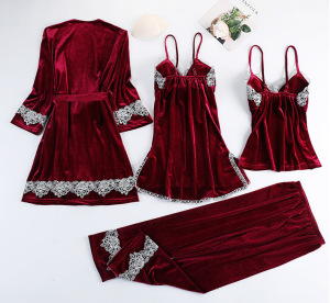 アマのパジャマ欧米のセクシーな下着のセクシーな誘惑レースのパジャマの金のベルベットのパジャマセット