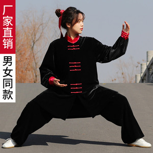 太極服秋冬南韓絨太極拳男女セット新型晨練功服保温中のロングタイプの武術服