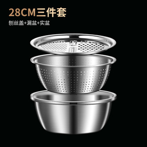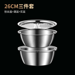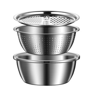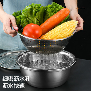 多機能かんな盆神器三点セットステンレス増厚金厨房洗米篩と洗面器代発加logo