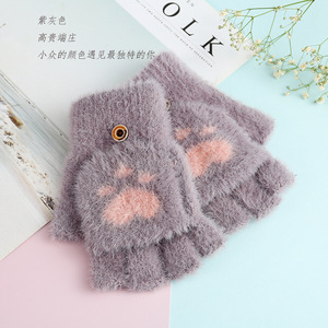 冬の新型成人学生半指カバー熊掌両用保温手袋メーカー直販