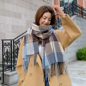 超大型の厚いマフラーの女性2024の新型の秋冬のカシミヤの格子のマフラーの韓国の東大門の学生は首を囲んで卸売りします。