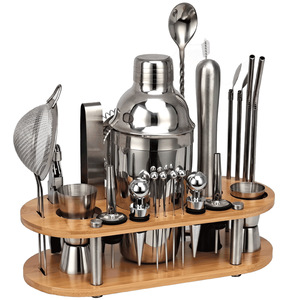23点セットステンレス製カクテルセットボストンカクテルセット新品取り外し可能楕円竹棚バースツール