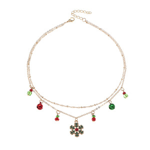 奈珠国境を越えた欧米の祝日アクセサリーの新しいファッションクリスマス鈴雪花ネックレス二重鎖骨鎖女