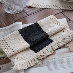 伊琪韻麻縄の食事マットの祝日の食器マットは色のストライプのフリンジの碗の敷き物の工場を編んで直接供給します。