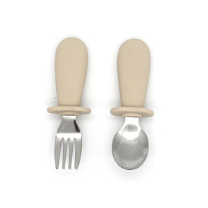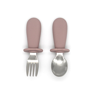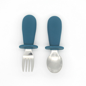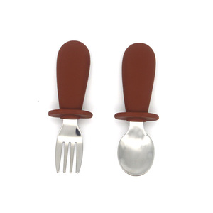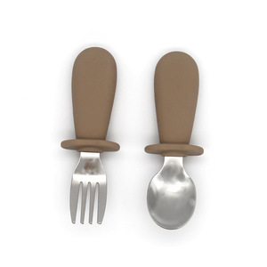 アマゾンの赤ちゃんのシングルハンドルフォークスプーンはロゴ食品級の赤ちゃんシリコン #316ステンレスフォークスプーンセットを印刷できます