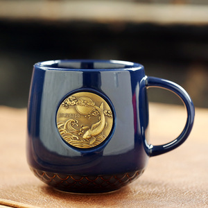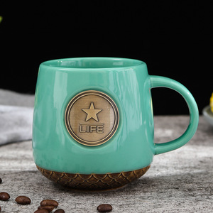 陶磁器のコップは銅片の銅メダルのコーヒーカップの星の巴風を持って魚のうろこのマグカップの卸売りを印刷することができます。