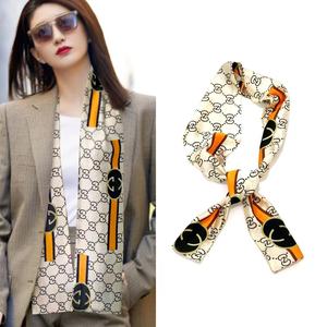 シルクスカーフ、シルク高級感、セレブ風ロングヘアバンド、ヘアアクセサリー、バッグリボン、プリントスカーフ、レディーススカーフ工場