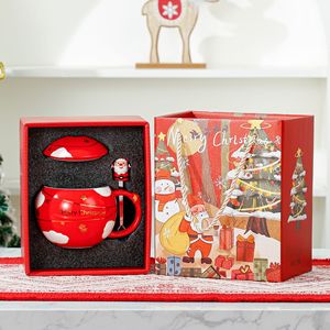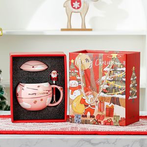 浮き彫り星クリスマス陶磁器カップ蓋付きクリスマスプレゼントマグカップギフトボックス女子祝日ギフトカップ