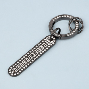 クリエイティブなダイヤモンドがちりばめられたスプリングバックル、ラインストーンの馬蹄バックルキーリング、パーソナライズされたダイヤモンドリング、落下防止車のキーホルダー番号プレート