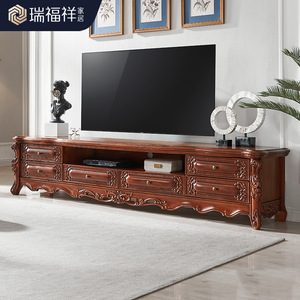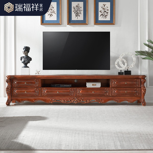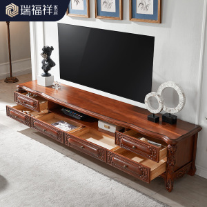 Ruifuxiang アメリカ無垢材テレビキャビネットライト高級新中国風ログスタイルテレビキャビネット 2.4m T313