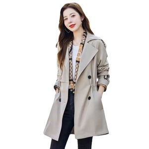ファッショナブルなミドル丈の女性用ウインドブレーカー 2024 春と秋の新しい女性のカーキコート小柄なコート