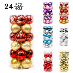 Amazonクリスマス装飾品6cm24pcspvcバケツ入れ彩色クリスマスボールセットクリスマスツリーペンダント