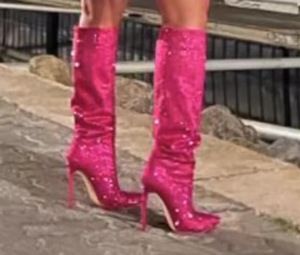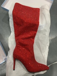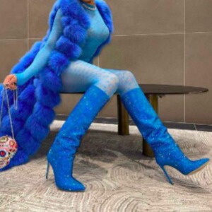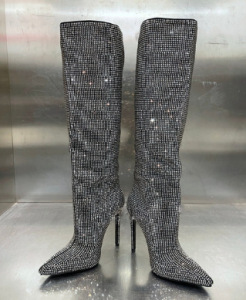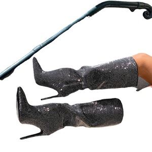 2025年新作 外貿 欧米風 星型ラインストーン付き ポインテッドトゥ 細ヒール 超ハイヒール ニーハイブーツ 大きいサイズ ランウェイ レディースブーツ