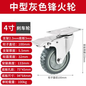4インチ重ブレーキホイール (スタンド厚さ5.5mm)