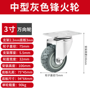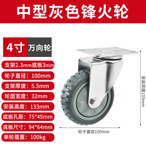 4インチ大型ユニバーサルホイール (ブラケット厚さ5.5mm)